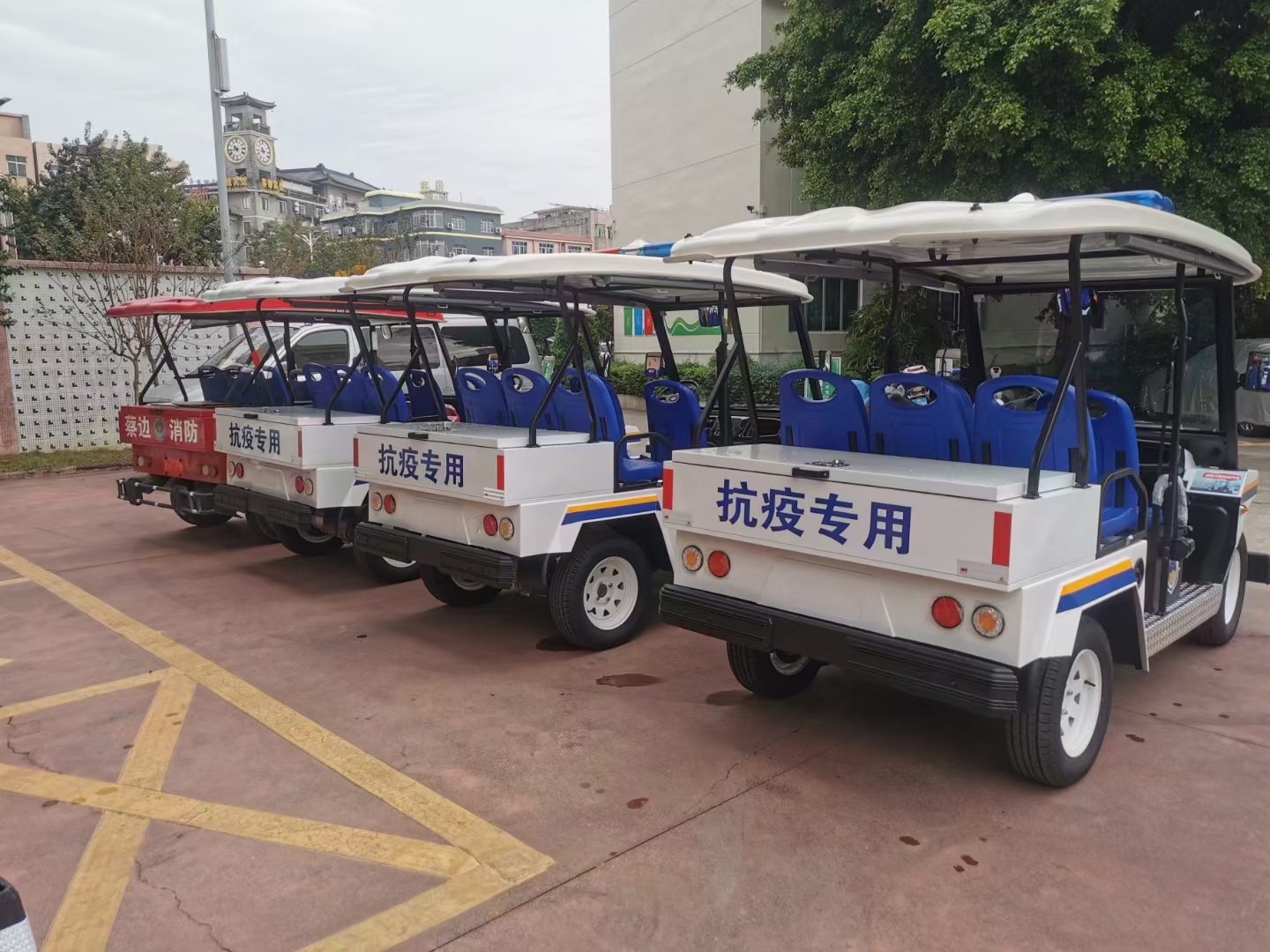 分類:公司新聞 發布時間:2021-12-29 09:59 隨著東莞大朗抗疫工作的開展,疫情也等到了很好的控制。 為了更好地支援大朗的抗疫工作,卓越電動車也一直在積極行動。 日前,卓越電動車加班加點生產的電動巡邏車已經陸續投入使用,正式奔赴大朗的抗疫一線。 大朗蔡邊是重點封控地區,也是最早投入使用電動巡邏車的村。 大朗其他封控地區的巡邏車也在陸續投入使用